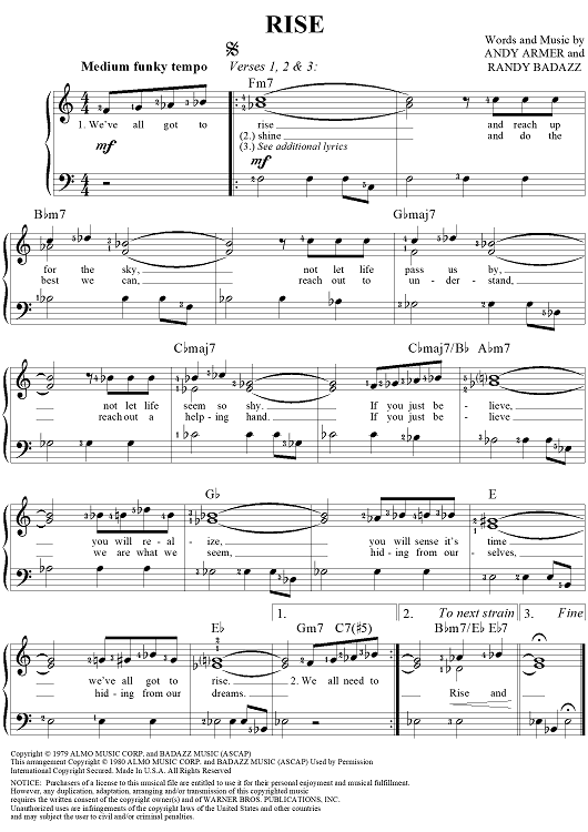 Digital Sheet Music for Rise by Andy Armer, Randy Badazz, Herb Alpert scored for Easy Piano/Vocal; id:276996