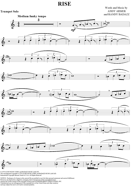 Digital Sheet Music for Rise - Trumpet Solo by , Andy Armer, Randy Badazz, Herb Alpert scored for Trumpet/Piano; id:276990