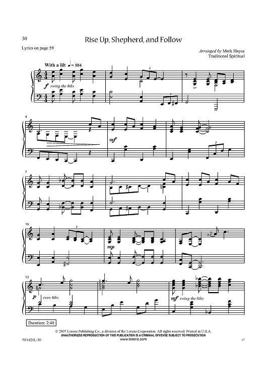 Digital Sheet Music for Rise Up, Shepherd, and Follow by Mark Hayes, Traditional Spiritual scored for Piano Solo; id:433809