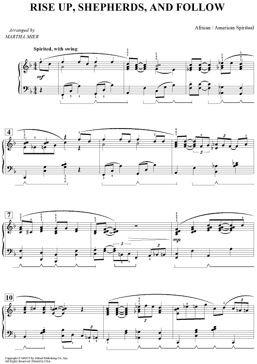 Digital Sheet Music for Rise Up, Shepherds, and Follow by Martha Mier, African American Spiritual scored for Piano; id:463565