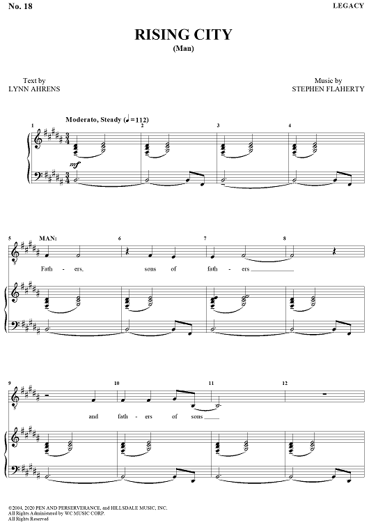 Digital Sheet Music for Rising City by Stephen Flaherty, Lynn Ahrens scored for Piano/Vocal/Chords; id:469383