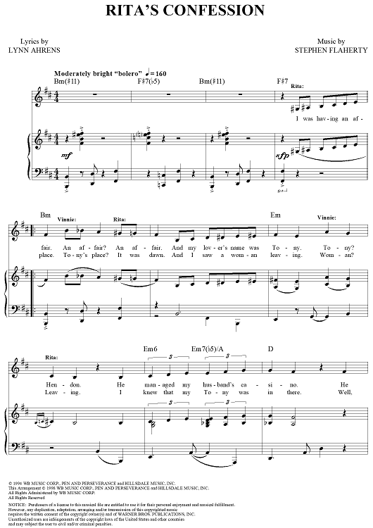 Digital Sheet Music for Rita's Confession by Stephen Flaherty, Lynn Ahrens scored for Piano/Vocal/Chords; id:311575