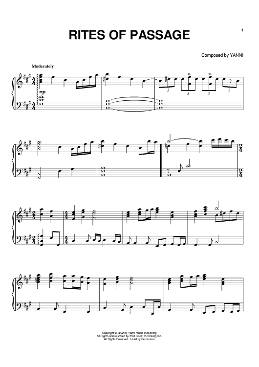 Digital Sheet Music for Rites Of Passage by Yanni scored for Piano; id:387433