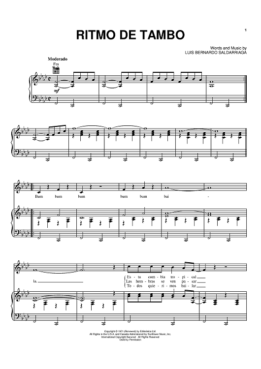 Digital Sheet Music for Ritmo De Tambo by Luis Bernardo Saldarriaga scored for Piano/Vocal/Chords; id:370567