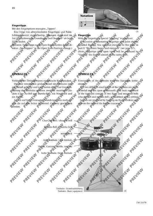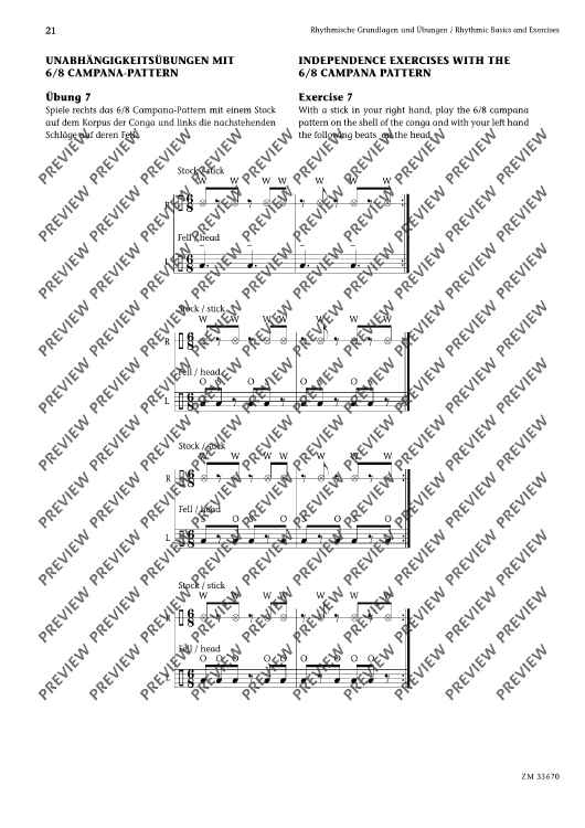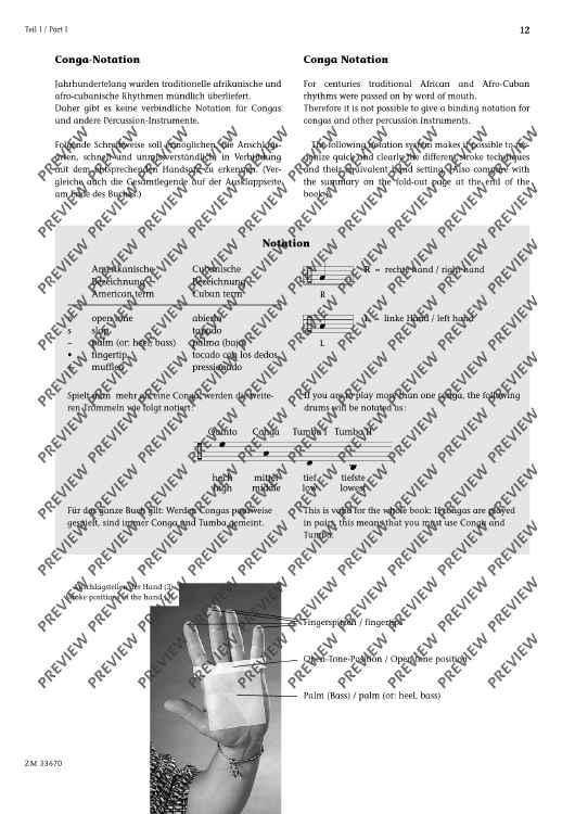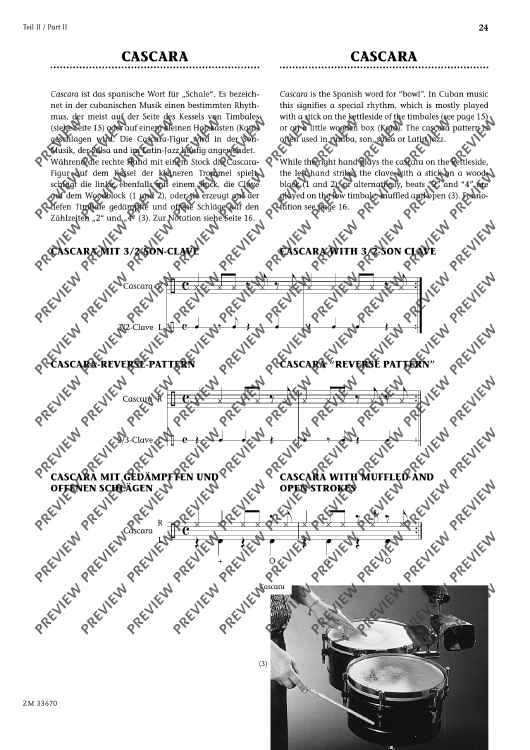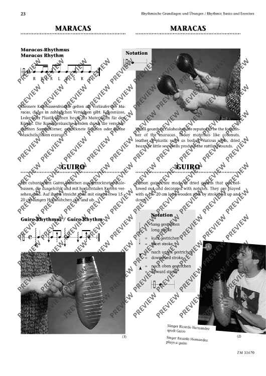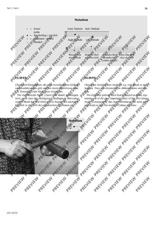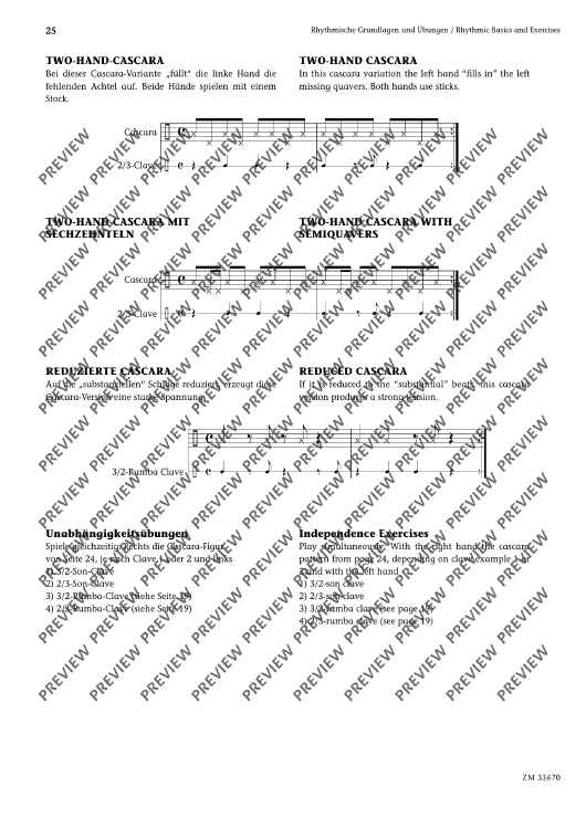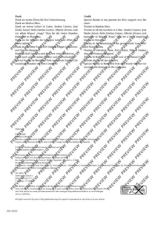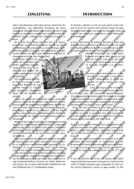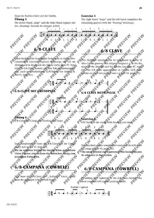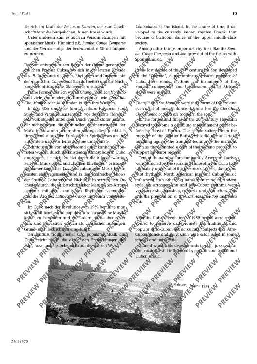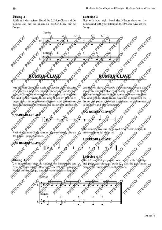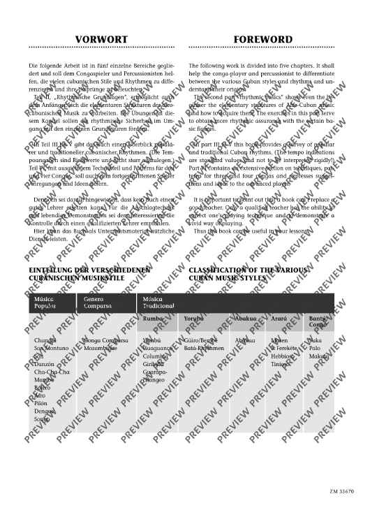 This edition gives the beginner the possibility to get to know the elementary structures of the afro-cuban music. It gives a good overview of popular and traditional rhythms, their styles and origins. In the last part also the advanced player can get some good new ideas and suggestions. Overviews and tables, numerous photos and pictures as well as recommendations for further reading round off the work. It is thus more than useful for teaching.