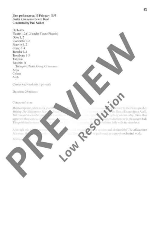 "Ritual Dances - Full Score" Sheet Music by Sir Michael Tippett