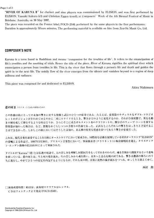 "River of Karuna II - Preface" Sheet Music by Akira Nishimura