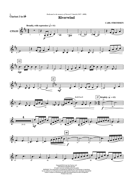 "Riverwind - Clarinet 3 in Bb" Sheet Music by Carl Strommen