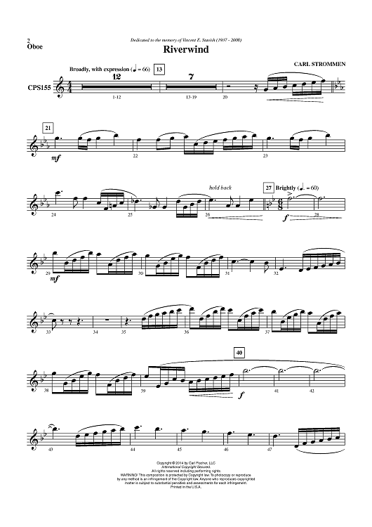 "Riverwind - Oboe" Sheet Music by Carl Strommen