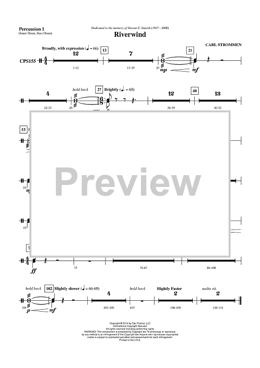 "Riverwind - Percussion 1" Sheet Music by Carl Strommen