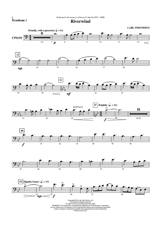 "Riverwind - Trombone 1" Sheet Music by Carl Strommen