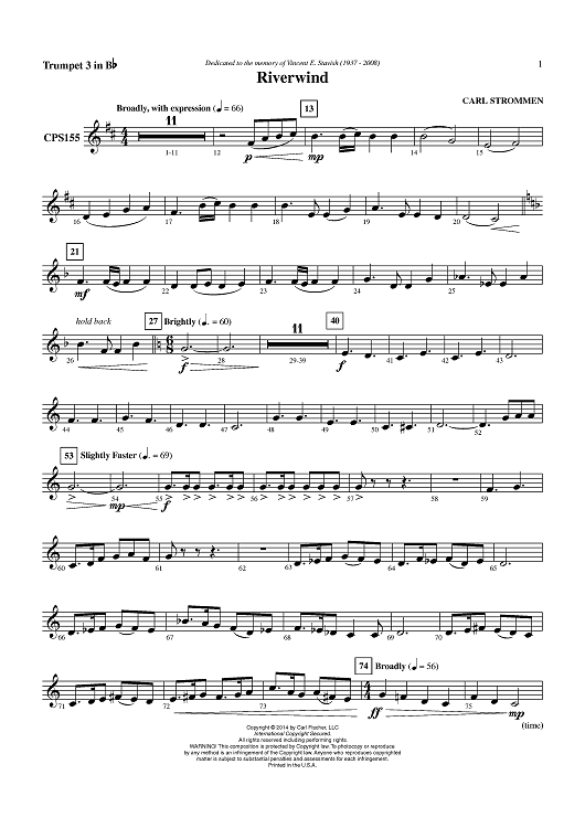 "Riverwind - Trumpet 3 in Bb" Sheet Music by Carl Strommen
