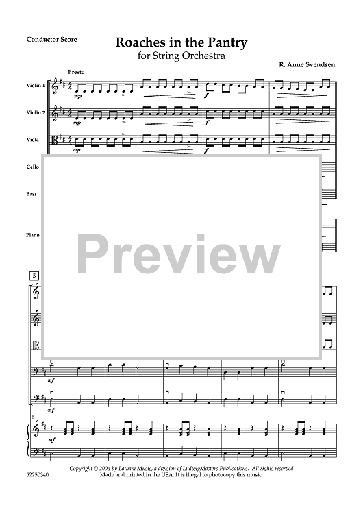 Digital Sheet Music for Roaches in the Pantry - Score by R. Anne Svendsen scored for String Orchestra; id:458506