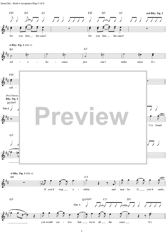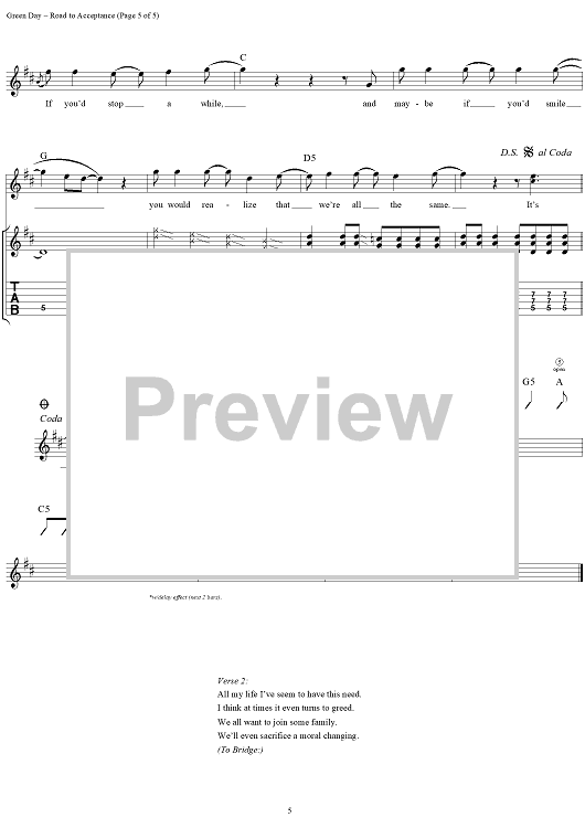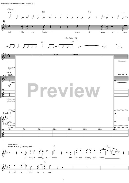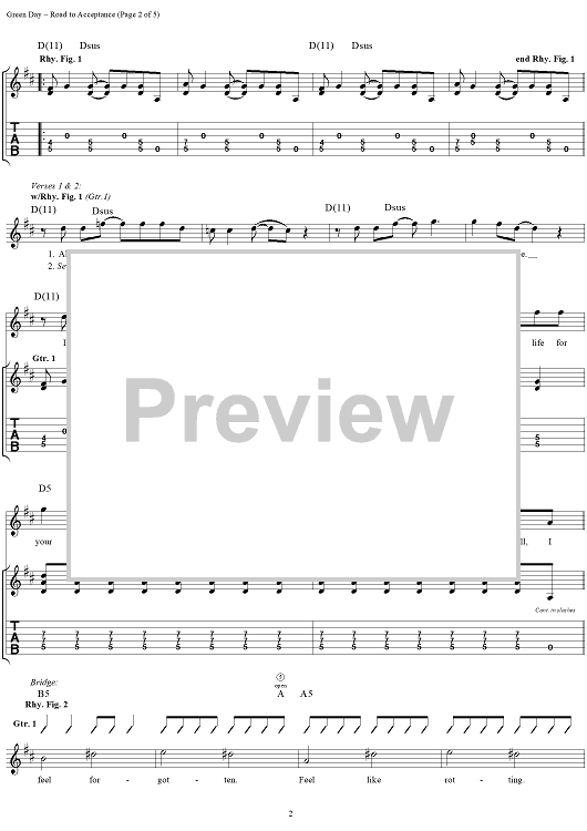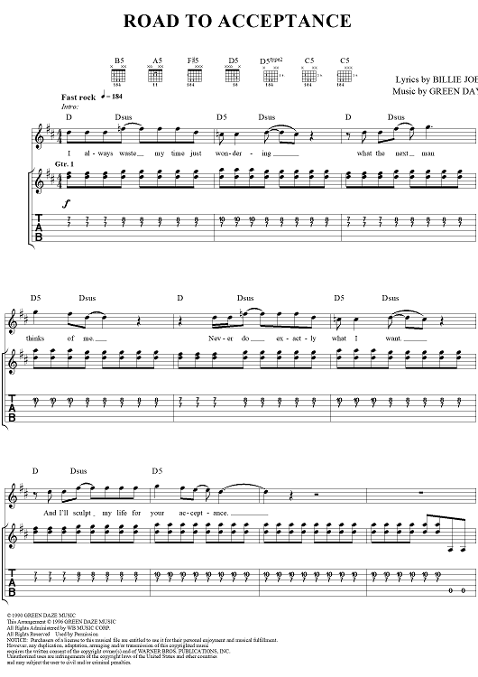 Digital Sheet Music for Road to Acceptance by Billie Joe Armstrong, Green Day scored for Guitar Tab/Vocal; id:112998