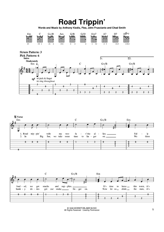 Digital Sheet Music for Road Trippin' by Flea, John Frusciante, Anthony Kiedis, Red Hot Chili Peppers scored for Easy Guitar Tab; id:374610