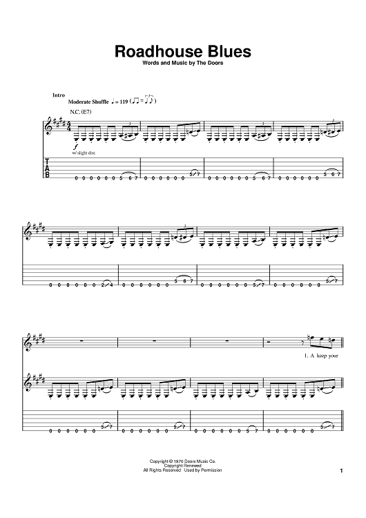 Digital Sheet Music for Roadhouse Blues by The Doors scored for Guitar Tab; id:374277