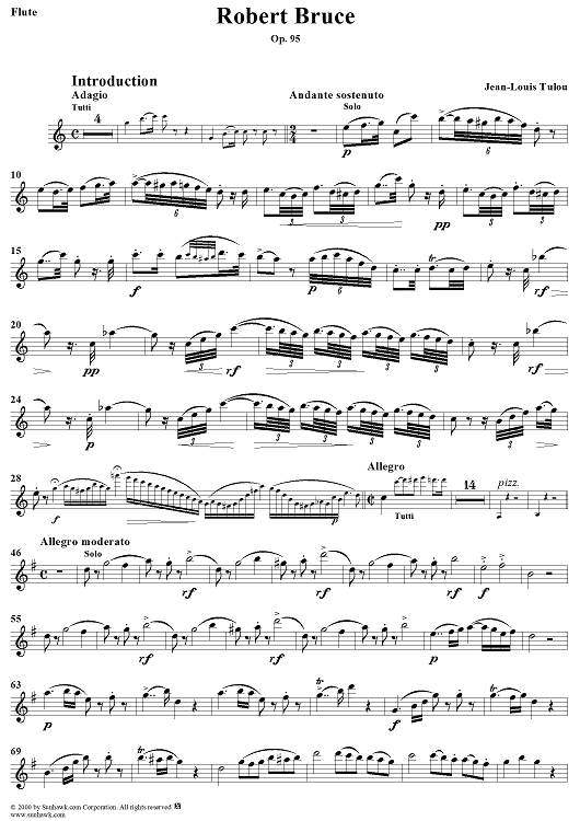 "Robert Bruce (Fantasy for Flute and Piano), Op. 95 - Flute" Sheet Music by Jean-Louis Tulou