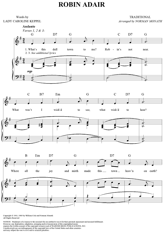 Digital Sheet Music for Robin Adair by Norman Monath, Lady Caroline Keppel, Traditional scored for Piano/Vocal/Chords; id:261663