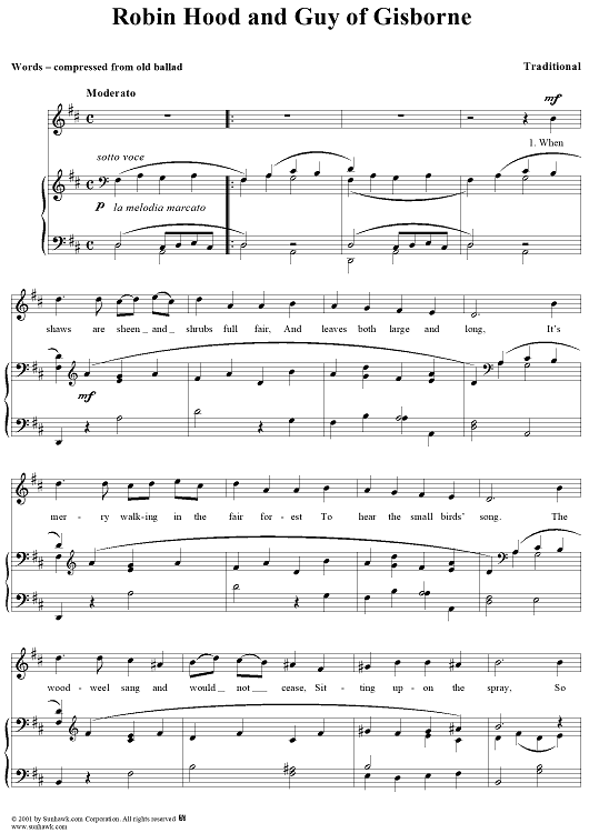 Digital Sheet Music for Robin Hood and Guy of Gisborne (words compressed from old ballad) by Traditional scored for Piano/Vocal; id:258901