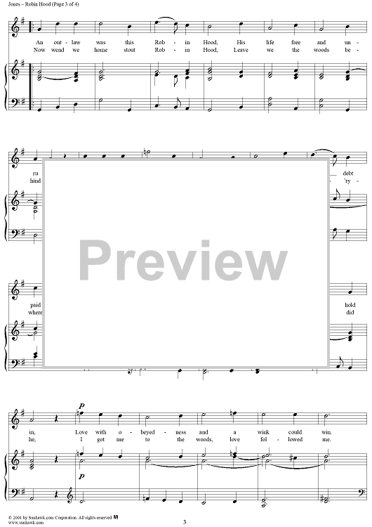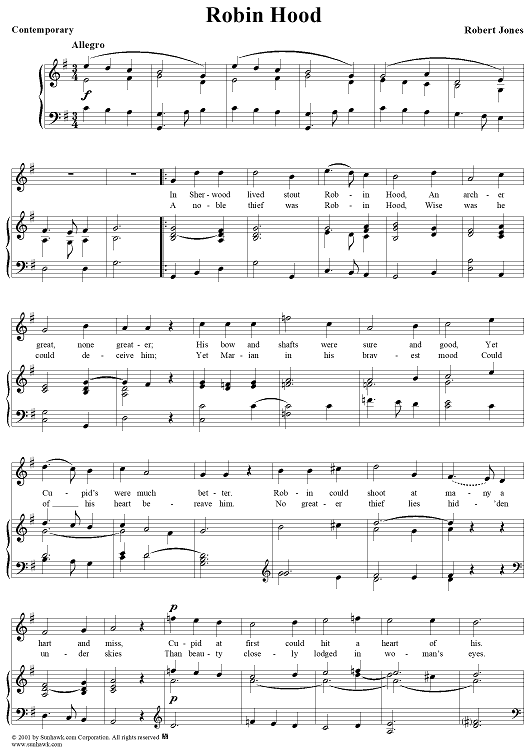 "Robin Hood (modern words)" Sheet Music by Robert Jones
