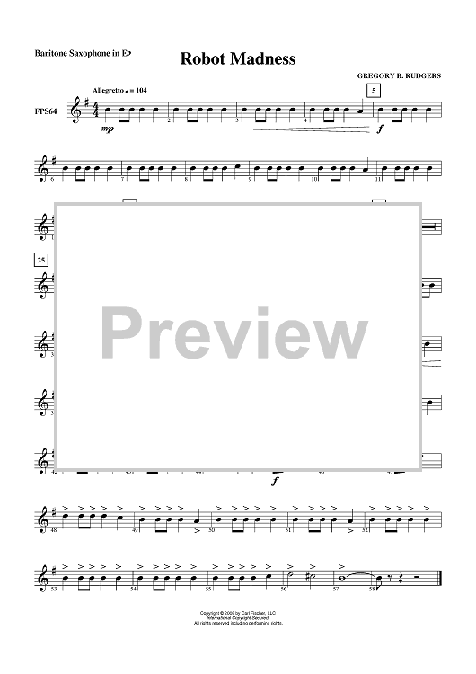 Digital Sheet Music for Robot Madness - Baritone Sax by Gregory B. Rudgers scored for Concert Band; id:409079