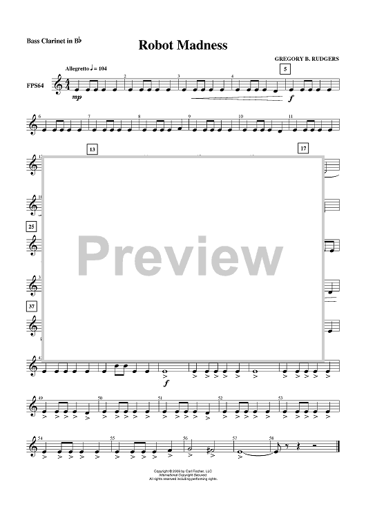 Digital Sheet Music for Robot Madness - Bass Clarinet in B-flat by Gregory B. Rudgers scored for Concert Band; id:409076