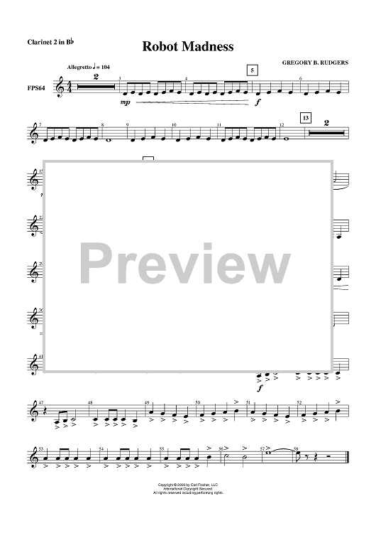 Digital Sheet Music for Robot Madness - Clarinet 2 in B-flat by Gregory B. Rudgers scored for Concert Band; id:409075