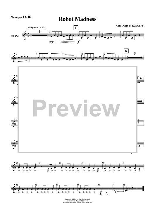 Digital Sheet Music for Robot Madness - Trumpet 1 in B-flat by Gregory B. Rudgers scored for Concert Band; id:409080