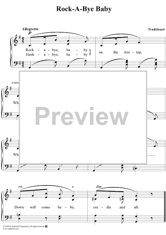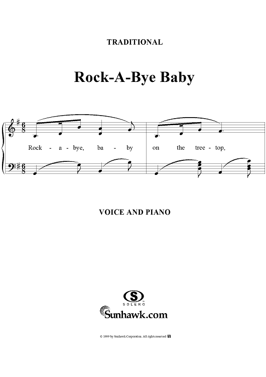 Digital Sheet Music for Rock-a-Bye Baby by Traditional scored for Piano/Vocal; id:117745
