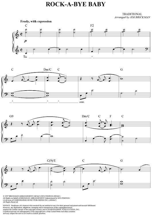 "Rock-a-Bye Baby" Sheet Music by Jim Brickman