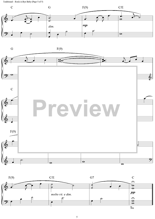 Digital Sheet Music for Rock-a-Bye Baby by Jim Brickman, Traditional scored for Piano Solo; id:240662