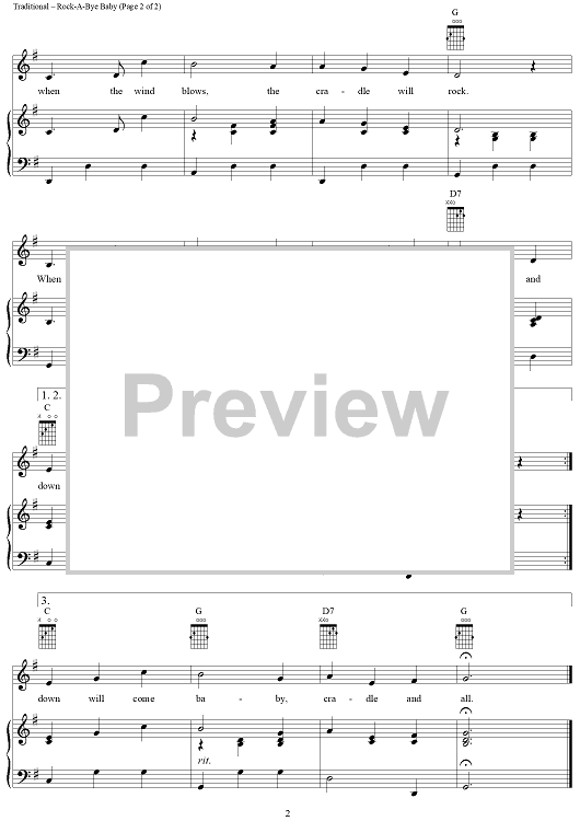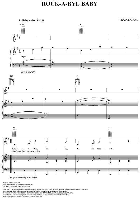 Digital Sheet Music for Rock-A-Bye Baby by Traditional scored for Piano/Vocal/Chords; id:289177