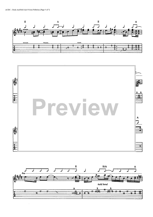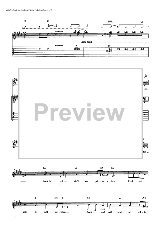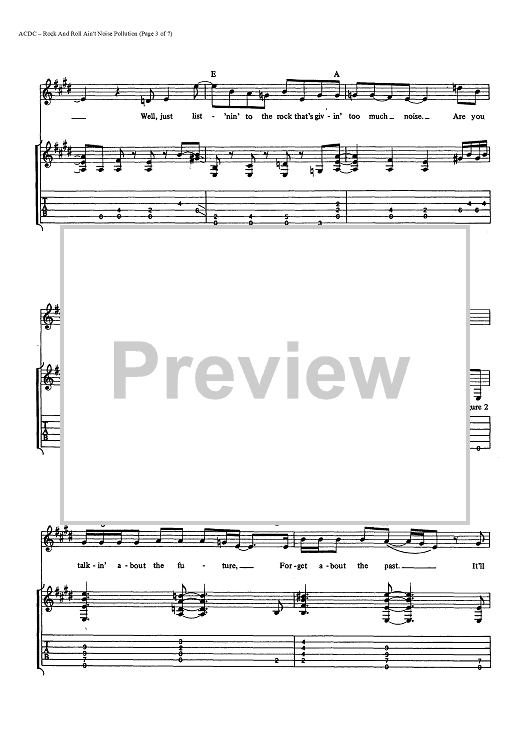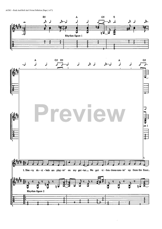 Digital Sheet Music for Rock And Roll Ain't Noise Pollution by AC/DC, Brian Johnson, Angus Young, Malcolm Young scored for Guitar Tab/Vocal; id:437006