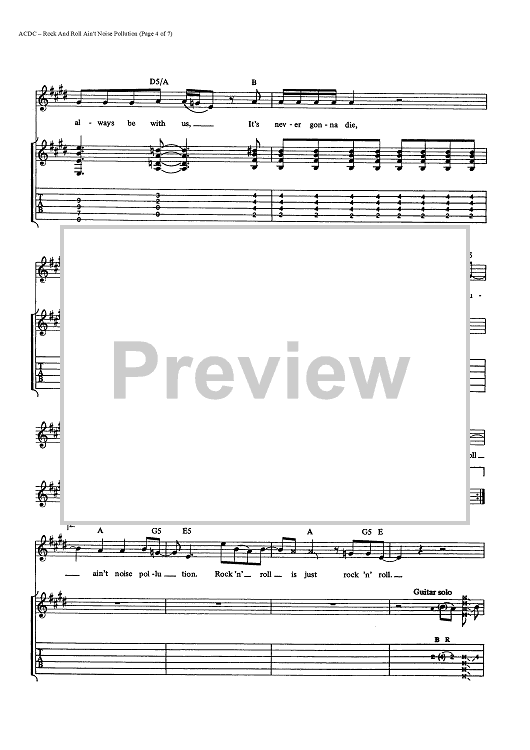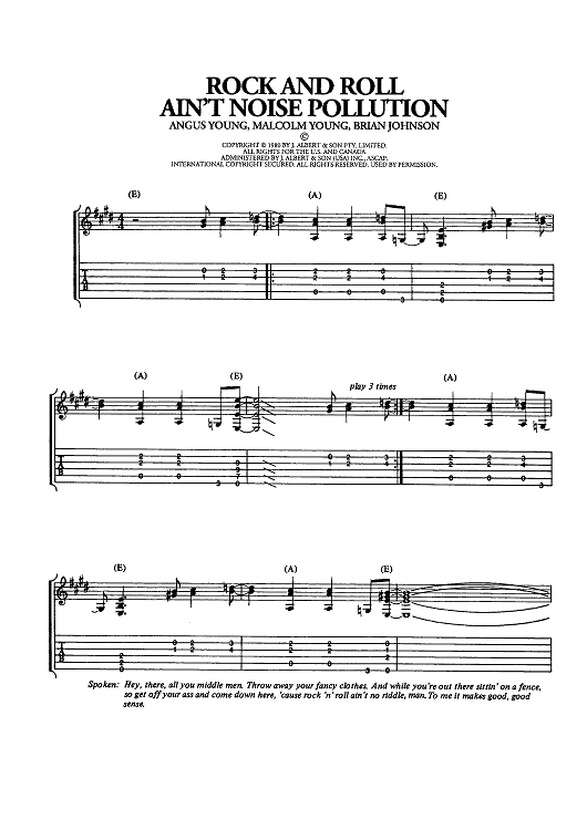 "Rock And Roll Ain't Noise Pollution" Sheet Music by AC/DC