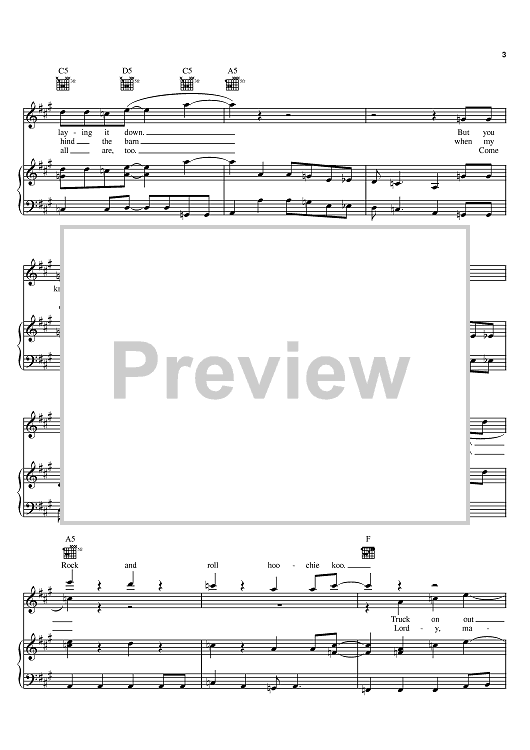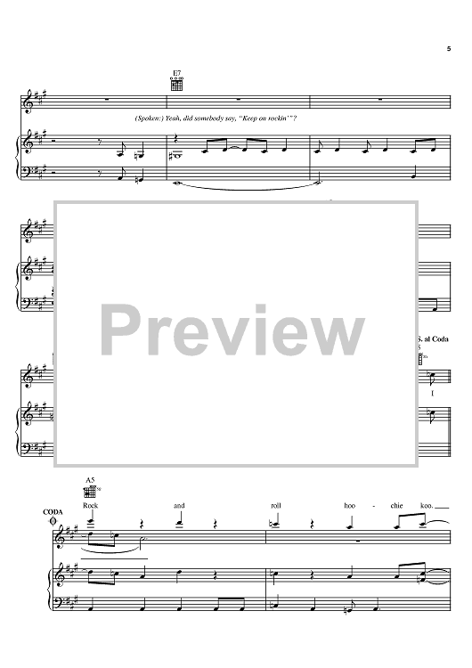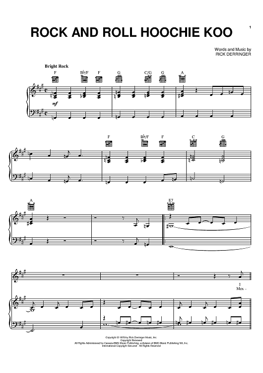 Digital Sheet Music for Rock And Roll Hoochie Koo by Rick Derringer scored for Piano/Vocal/Chords; id:368284