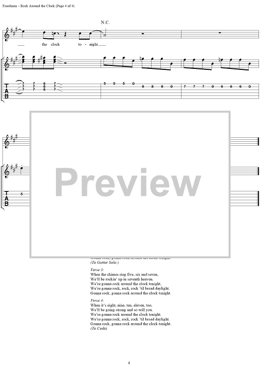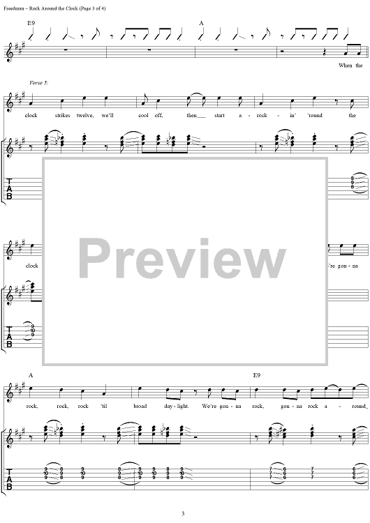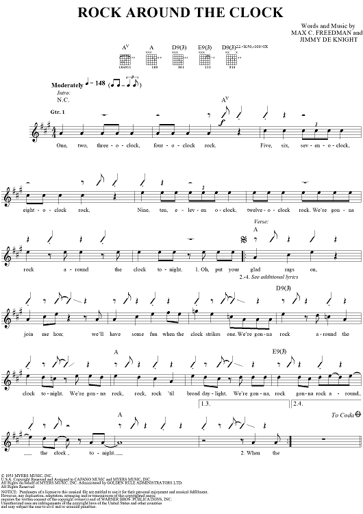 Digital Sheet Music for Rock Around The Clock by Max C. Freedman, Kenn Chipkin, Bill Haley & His Comets, Jimmy DeKnight scored for Guitar Tab/Vocal; id:114062