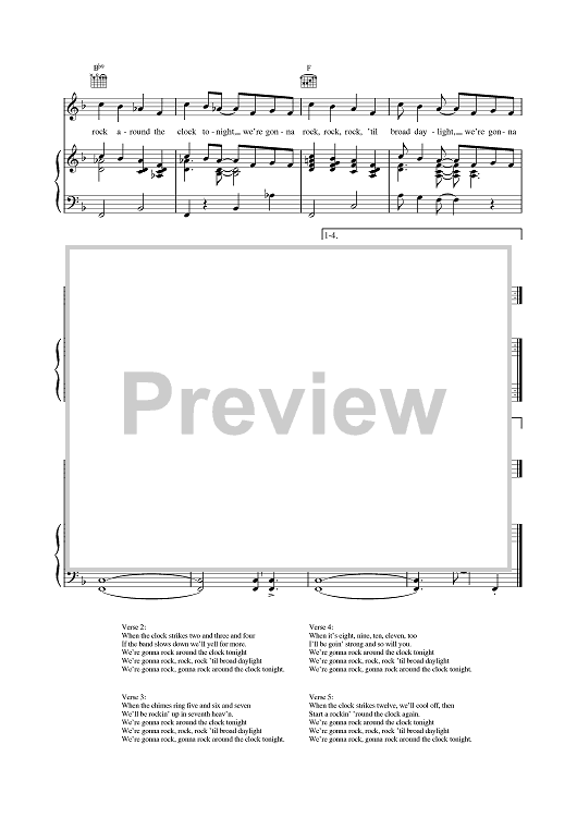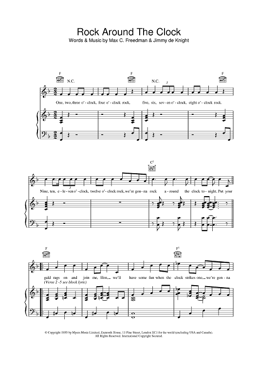 Digital Sheet Music for Rock Around The Clock by Max C. Freedman, Bill Haley & His Comets, Jimmy DeKnight scored for Piano/Vocal/Chords; id:378783