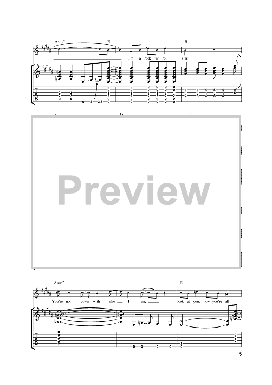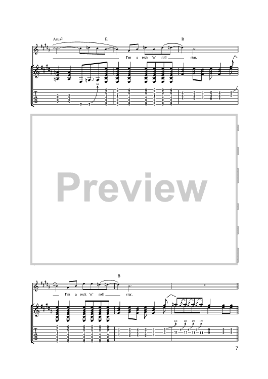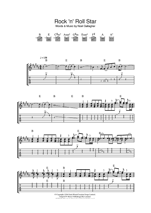 Digital Sheet Music for Rock 'n' Roll Star by Noel Gallagher, Oasis scored for Guitar Tab; id:392872