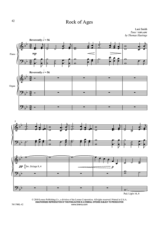 Digital Sheet Music for Rock of Ages by Thomas Hastings, Lani Smith scored for Organ and Piano; id:433519