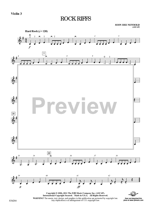 Digital Sheet Music for Rock Riffs - Violin 3 (Viola T.C.) by Soon Hee Newbold scored for String Orchestra; id:421723