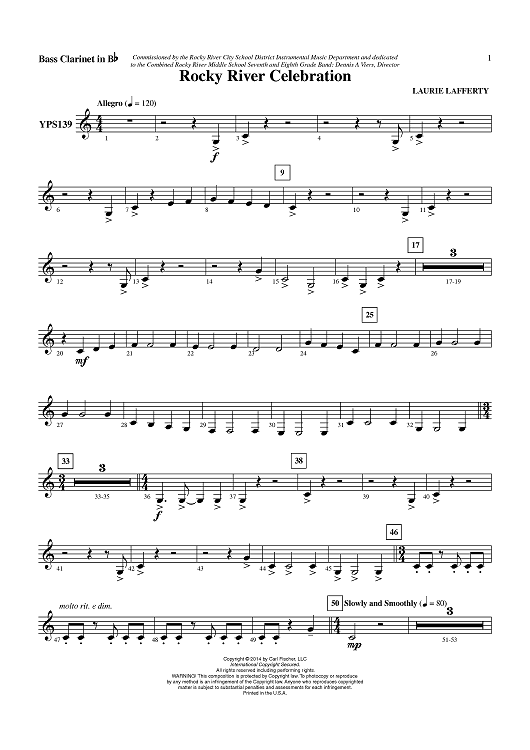 Digital Sheet Music for Rock River Celebration - Bass Clarinet in Bb by Laurie Lafferty scored for Concert Band; id:452743