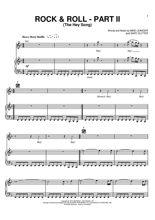 Digital Sheet Music for Rock & Roll - Part II (The Hey Song) by Gary Glitter, Mike Leander scored for Piano/Vocal/Chords; id:380507