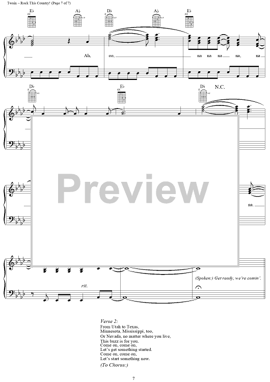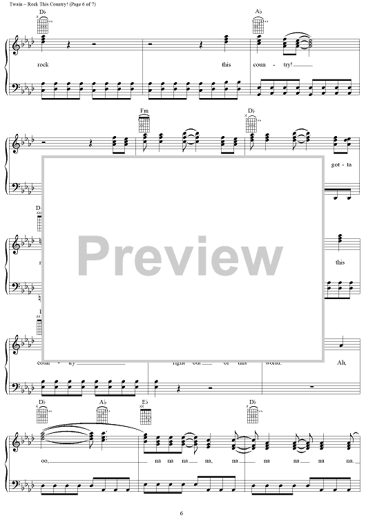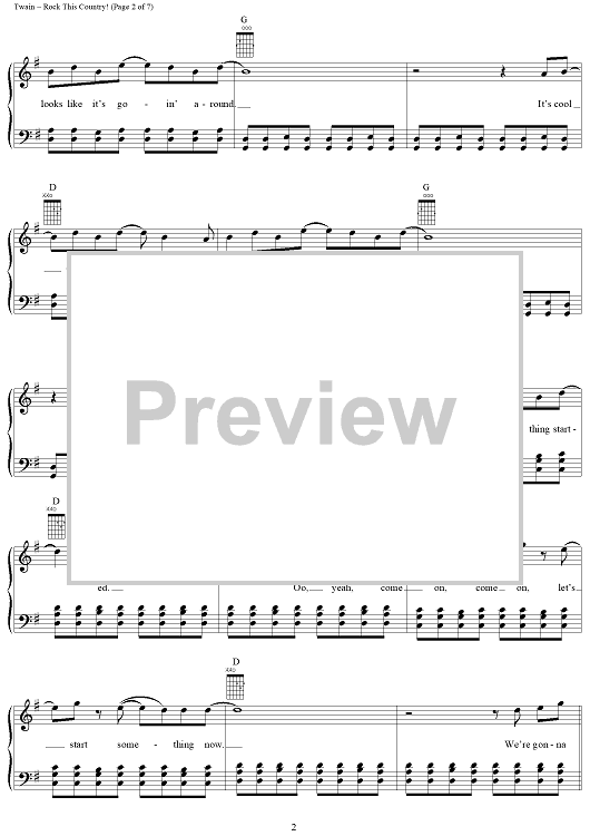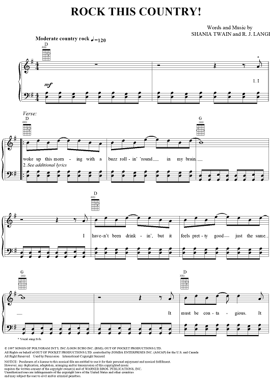 Digital Sheet Music for Rock This Country! by Shania Twain, Robert Lange scored for Piano/Vocal/Chords; id:112650