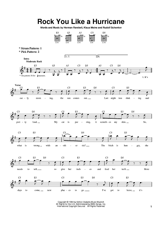 Digital Sheet Music for Rock You Like A Hurricane by Rudolf Schenker, Klaus Meine, Herman Rarebell, The Scorpions scored for Easy Guitar; id:370969
