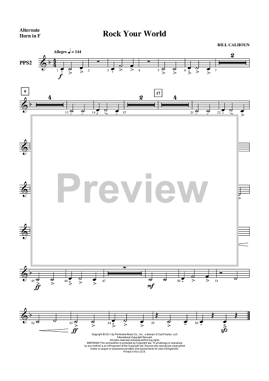 Digital Sheet Music for Rock Your World - Alternate Horn in F by Bill Calhoun scored for Concert Band; id:420575