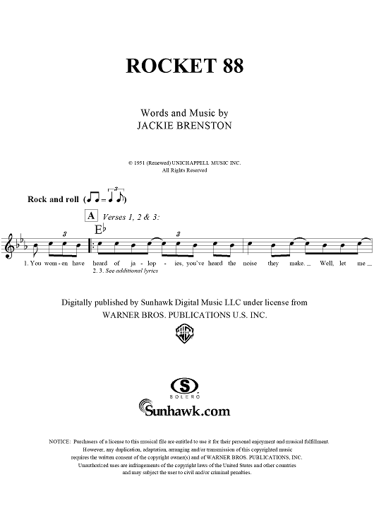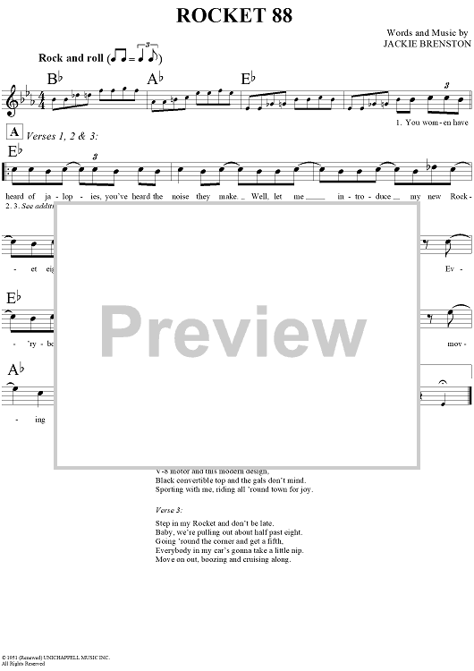 Digital Sheet Music for Rocket 88 by Jackie Brenston scored for Lead Sheet; id:291614