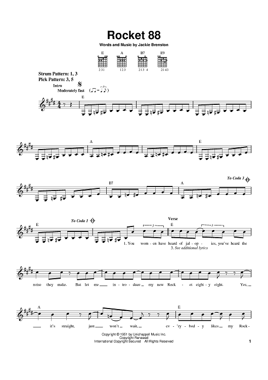 Digital Sheet Music for Rocket 88 by Jackie Brenston scored for Easy Guitar; id:369592