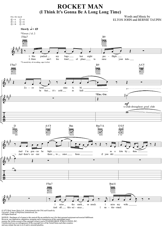 "Rocket Man" Sheet Music by Elton John