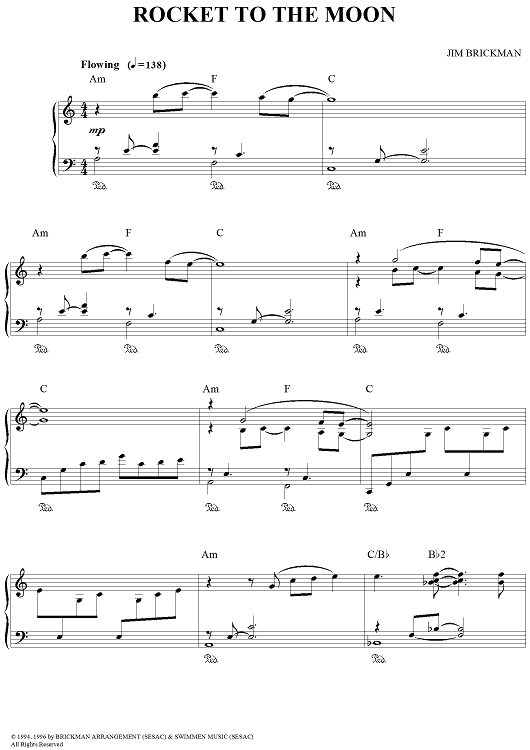"Rocket to the Moon" Sheet Music by Jim Brickman