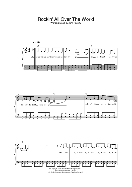 Digital Sheet Music for Rockin' All Over The World by John Fogerty, Status Quo scored for Piano/Vocal/Chords; id:396786